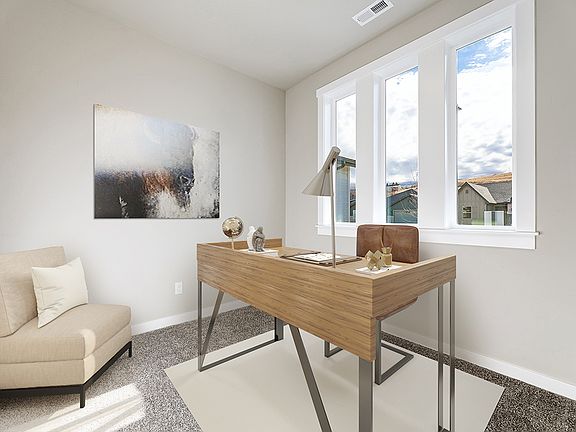 The versatile Kierland is ready to welcome you home. This perfectly sized charmer in Moxie Ridge is totally livable and functional, with a kitchen and dining space that flows seamlessly to the open living room. The Kierland includes a versatile office/den space that could also serve as a third bedroom or guest room! The nicely sized master suite is located at the back of the home and includes dual vanities and a walk-in closet!