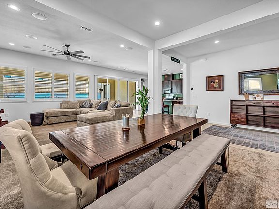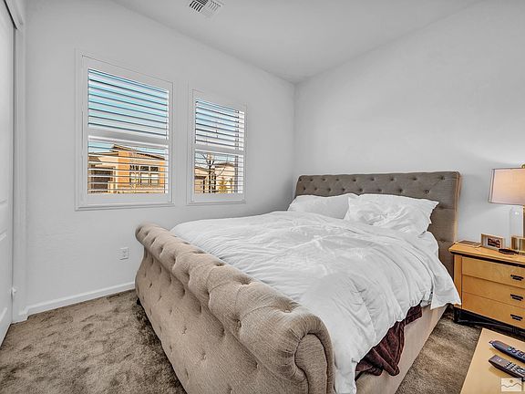 This newly constructed home sits in an active 55+ gated community with an 18,000 sf clubhouse in South Reno. You will walk in to find an open floorplan and great in and outdoor entertaining space. This home has 2 bedrooms and a convertible den space. This home includes upgraded flooring, counters, and electrical including surround sound and task lighting in the kitchen. This backyard is spacious with a fully covered patio and amazing views of the mountains., Regency is a brand new home community at Carmella Ranch. This community offers plenty of activities through their club house, fitness center, indoor pool, and amphitheater. The community is gated with a 24/7 onsite manager and gate for security. Home back on market at no fault of seller.