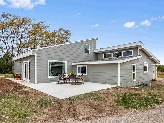 Are you looking for a little acreage and a beautiful, yet affordable home, in a great school district and only 20 minutes from Wichita? Well, here it is! 4.8 acres of fenced acreage with mature trees just north of the Cheney community. The community has everything you need, and is just a 5 minute drive - amenities include a grocery store, a Dr.'s office, several restaurants, Post Office, Hardware Store and fantastic USD265 Cheney Schools! The location doesn't get any better, you just can't find these properties for sale, because no one wants to leave! As you drive into the 4.8 acres, you'll love the rows of evergreens and the circle drive! The house is striking, with new siding and a new roof, and a lovely patio that is shaded by the house and the trees most of the day...a lovely place to sit and relax with your family, away from it all. Beautiful double doors welcome you into this newly remodeled home. Over 2000 square feet of open living area is on the main floor, and includes 3 beds and 2 beautiful full baths, a huge kitchen with vaulted ceilings and tons of natural light, and the biggest, most beautiful, functional island you have ever seen! You'll also love the mudroom/laundry room with a separate back entrance. It is very roomy and in a great location! There is a nice size loft that could be easily used for a 4th bedroom, a den, craft room or a kid's play room! New HVAC system, all new windows, new flooring, all new water lines (PEX), new electric wiring (95% of house has all new wiring). Come and check this one out! You will not want to leave once you are here!