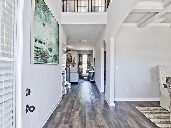 Open concept kitchen with walk-in pantry, oversized island overlooking the breakfast area and family room.Dining room with coffered ceilings.Primary suite with sitting area, expansive walk-in closet, dual vanity, tub and oversized shower in primary suite's bath.Upper level loft is perfect for entertaining.Mud room and large upper-level laundry.Private guest bedroom/study is spacious and bright, perfect for a home office.
