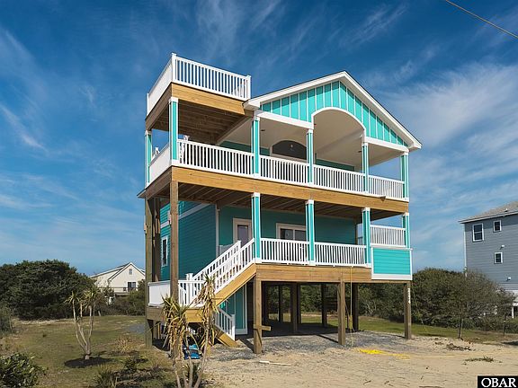 Welcome to 2174 Sandpiper Rd, a stunning 2023 custom-built retreat in Carova Beach, Corolla, NC—just three rows from the ocean with sweeping views. This 2,100 sq ft home features 4 bedrooms, 4 baths, a bright open-concept top floor with a modern kitchen and great room, plus multiple suites including a top-level queen suite and a second-level king suite with a private deck. A fun rec room with pool table, bunk and daybed rooms, and luxury finishes like quartz countertops, LVP flooring, spray-foam insulation, and impact-rated windows ensure comfort and style. Enjoy expansive decks, a private hot tub, and direct 4WD beach access—all on a spacious lot in the X flood zone, where no flood insurance is required. Perfect for relaxing, entertaining, or vacation rental potential, this home offers the ultimate Outer Banks lifestyle.
