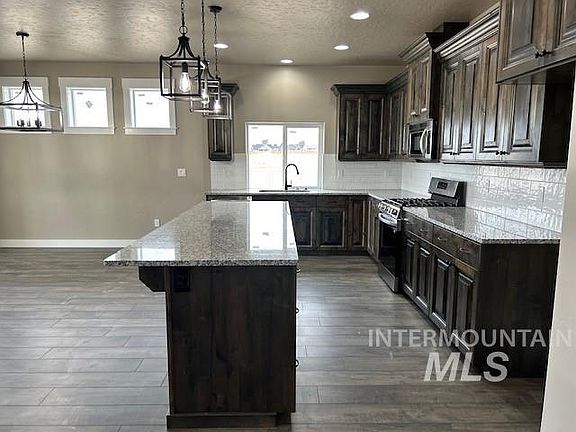 The Stanstead plan includes a split bedroom floorplan with a gas fireplace, large kitchen island, kitchen pantry, 5 burner gas stove, large 3 car garage, back covered patio and front covered porch. Full front and back sprinklers and sod with front landscaping per subdivision guidelines.