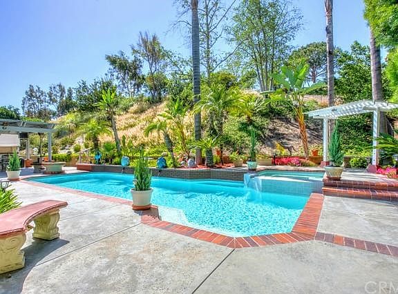 RARELY ON MARKET! ONE STORY HOME with POOL, SPA, BUILT-IN BBQ, GAZEBO, GAS FIREPIT, FRUIT TREES and a FINISHED 3 CAR GARAGE with STORAGE in the gorgeous community of MONTBURY ON THE HILL. In Montbury you can enjoy miles of walking/horse trails surrounding the neighborhood, two lighted tennis courts, parks and greenbelts. This home offers three bedrooms and two bathrooms, one bedroom is currently used as an office. The master bedroom overlooks the peaceful backyard and pool area, there is a walk in closet and the master bathroom has soak in-tub with a view out to the backyard. Plenty of parking with the three car garage that includes room for the storage closets and a work bench, there are also large side yards to store any toys. A new roof was just recently added and a new pool pump. The outdoor lighting in the yard is all energy efficient LED lighting throughout. There are ceiling fans in the family room and all bedrooms. You must come back to see this home in the evening with the beautiful pool, private back yard scenery and lights! Close to restaurants, shops and freeways. Don't miss the opportunity to own a home in the is great neighborhood!