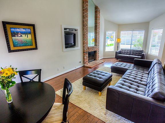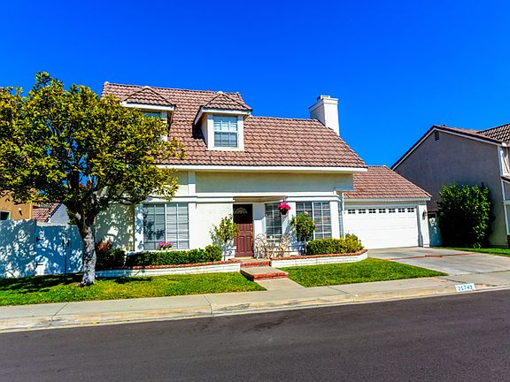 A cozy 3 bedroom home, 1/2 mile from Lake Mission Viejo. Very peaceful cape cod style neighborhood. All new double pain windows and french door. Remodeled kitchen with marble countertops, bright white cabinets and shiny chrome hardware. Cabinet space was more than doubled while still leaving room for a table and stools. Dining room easily houses a table for 6 or more and a sideboard and china cabinet. Fireplace reconfigured with new mantlepiece and wired for x-large TV. Downstairs is all cherry engineered wood, including bath and generous bedroom with walk-in closet. Newly carpeted stairs and 2 upstairs bedrooms. Mountain views from master with walk in, additional bedroom with great dormer windows. Backyard has been relandscaped - large pavers on patio and a cottage-style garden. Beautiful new staircase . New entry door with beveled glass. Plantation shutters throughout.