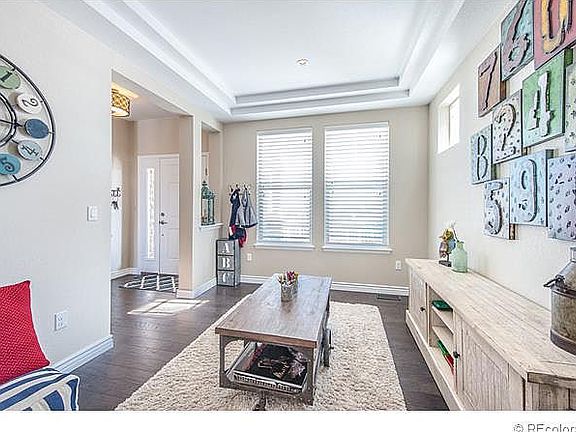 LOCATION! LOCATION! LOCATION! This home has it all... located in the pristine community of Idyllwilde. This home shows like a model and is fully appointed with upgrades way above builder standards including heated tile floors in the master bath, granite counters throughout, wood floors throughout the main floor, designer fixtures & prewired for surround sound. This amazing home is located next to a park with easy trail access to Idyllwilde's large open space system. Don't miss the view's from the back patio and view's of Pikes Peak from the bedroom. Live in a single family home without having to do front yard maintenance and snow shoveling, even your front porch is shoveled! Don't forget about all the amenities Idyllwilde has to offer including a private fitness center, pool, clubhouse, neighborhood coffee house and it is all only two blocks away. Easy walking distance to Cimarron Middle School and Legend High School.
