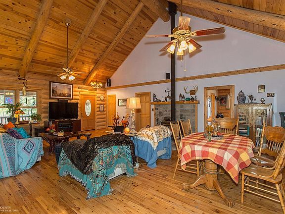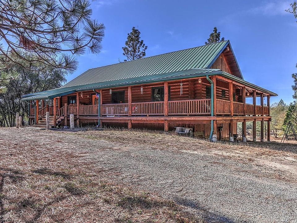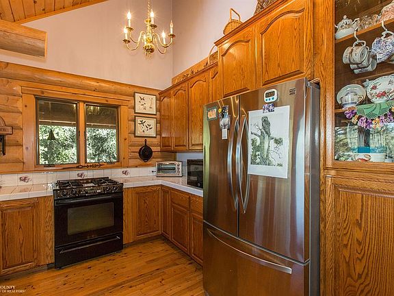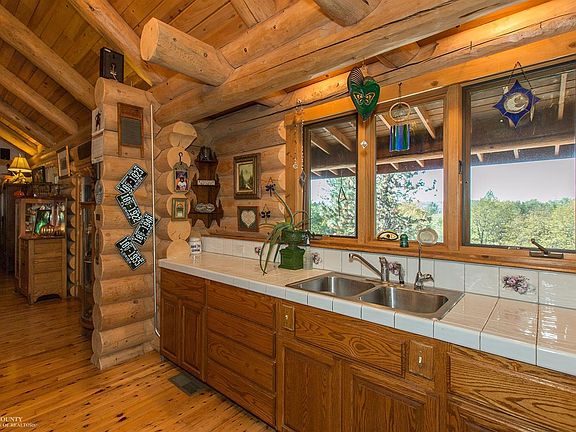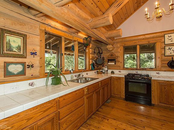 If you have been dreaming of owning a log home, then you need to come and see this beautiful Oregon Log home that has 3 bedrooms, 2 bathrooms and 1,620 square feet. Just some of the many features include a covered deck that wraps all of way around the home, steel roofing, vaulted ceilings in every room, lots of tile, solid core doors, New Zealand Cypress floors throughout the home except for the tile floors in both bathrooms and a 1,620 square foot garage/ workshop under the home and . The home sits on a knoll top over looking the 16.69 along with panoramic local views of the local, a fenced garden area, circular driveway and a mixture of trees.