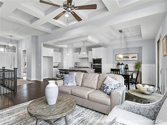 The Catalina by Crestwood Custom Homes is sure to impress. With 10' ceilings in the entry and great room and walls of windows. This home has it all. Wide planked hardwood floors, custom cabinetry, built-ins & box vault ceiling with beams are just a few features that are sure to impress. The kitchen has large island with Quartz counter tops, gas cook top, built in oven, goose neck faucet, and panty. The great room offers beautiful ceiling treatment, built-ins & cozy gas fireplace. The master bedroom and bath is a showstopper. Large zero entry walk-in shower and free standing tub makes this room feel like a spa retreat. With the walk out, finished lower level is the perfect entertaining space with large family room, walk up bar with mini fridge, sink and granite/quartz counter top, 2 additional bedroom - one with double doors - great for exercise room or office and and additional full bath. Enjoy your morning coffee on the covered deck rain or shine. HOA covers your yard work, snow removal, painting of the exterior, winterization of irrigation, and common ground maintenance. Now your time is your own - no more yard work.