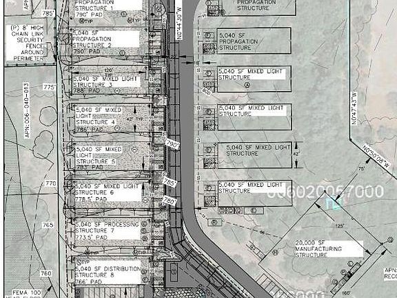 SITE B: 6.76 Acres, Plans include over 15,000 sqft of Mature Canopy, 8 Buildings total. Plans detail a separate Security house, and all the space you will need to ascend in the Cannabis Industry. This is great opprtunity to start building your dream operation. We have a great team to assist.
