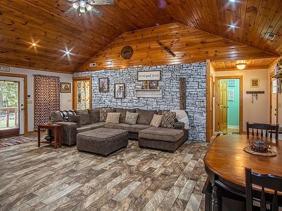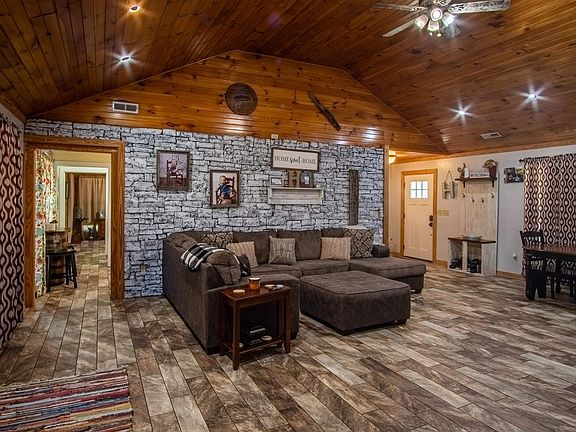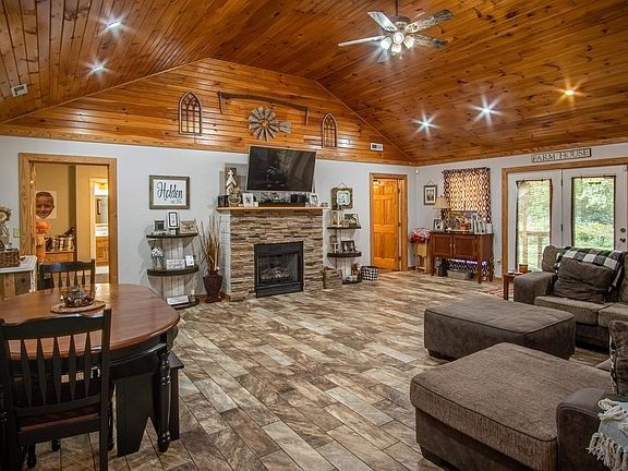 Looking for peaceful country living with acreage and a creek? This is the place! This home is situated on a little under 11 acres with a creek that runs all the way through the backside of the property. There is plenty of room for animals or livestock. This adorable home features 3 bedrooms and 2 1/2 baths. There are lots of custom features including specialty ceilings, rock accent wall in living room and fireplace. Master bedroom features a extra large walk in closet and a master bath. Additional bedrooms and bathroom have plenty of space. Sit on the front or back porch and enjoy the countryside views or relax down by the creek. This home also features a detached garage that is being used as a mancave but could easily be used as garage or shop! MUST SEE!