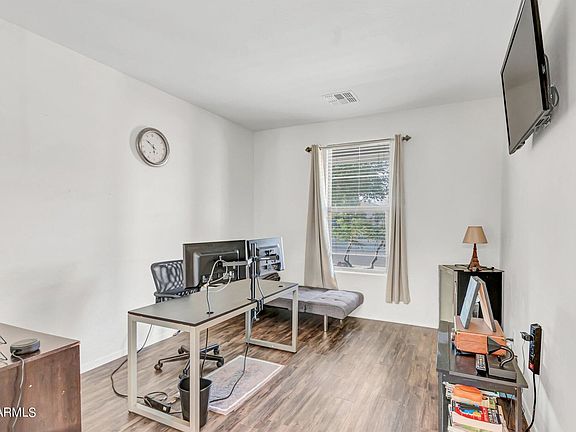 Spacious peaceful 4 bedroom with mountain views, large loft + den. Timeless stone facade graces the exterior with your choice of new exterior paint color.Soaring ceilings & modern wood-like plank tile floors invite you to behold a large custom sliding barn door that offers many options for entertaining. Guests will rave over the Chef's kitchen complete with copper farmhouse sink, soft close cabinets, and wine storage. The expansive backyard offers amazing views along with a mature fruit tree. Enjoy a sunset from the en suite private balcony after spending time in the romantic master suite with two separate walk in closets and garden tub. Catch&release fishing, luxe community pool, fitness center & so much more. Easy to make this a 3bath 5 bed if needed.The location is ideal.