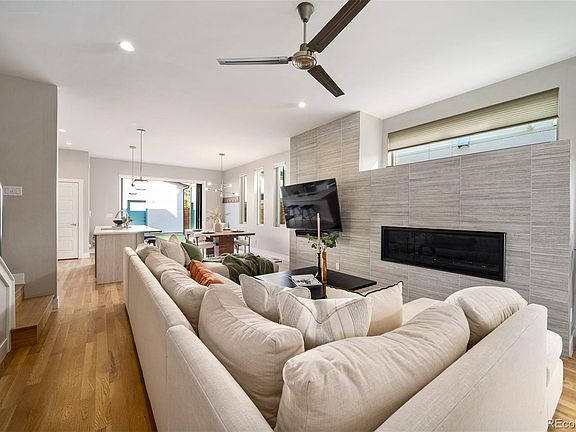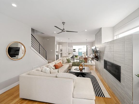 Exquisitely Designed Townhome in Prime Location! Nestled on a serene block near Sloan’s Lake, this east/west-facing residence is truly a hidden gem. The location offers the best of both worlds: a peaceful street w/ easy access to some of Denver’s most cherished amenities. Enjoy proximity to parks, playgrounds, top-rated dining, boutique shopping (Highlands Square), and the vibrant downtown Denver area. Bonus: the home is conveniently close to highway access and routed along the Denver Bikeway. Step inside to find luxurious finishes throughout, including sleek quartz countertops, a designer tile backsplash, and stainless steel appliances, a gas range and double ovens. The great room is centered around an eye-catching, tiled focal wall, boasting a modern gas fireplace and a mounted flatscreen TV (included with the home). In addition to 4 bedrooms there is a flex space/office on the main floor. This home has a great floor plan! The generous great room seamlessly connects to the kitchen & dining area, while panoramic accordion-style sliding glass doors lead to a west-facing, private backyard oasis creating a lovely indoor-outdoor flow. This fenced-in retreat includes a patio and irrigated turf yard—ideal for low maintenance and outdoor entertaining. On the second level, you'll find a tranquil primary suite with a private east-facing balcony and a luxurious 5-piece ensuite bathroom featuring a deep soaking tub, an oversized shower, and walk-in closet. This level offers a rare 3 bedrooms on the same floor. The laundry room and full bathroom featuring double sinks on this level are an added convenience. The 3rd level boasts two more decks, a wet bar w/ a beverage refrigerator, and a fourth bedroom w/ a full bathroom—an ideal setup for guests, roommates, or entertaining. No HOA! Don't miss the opportunity to make this extraordinary home your own!
