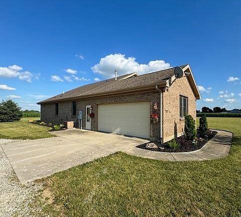 Welcome to country living at it's finest! This 3 bedroom 2 full bath all brick ranch situated on 2 acres is everything you have been looking for. You will be welcomed by a covered porch, great for front porch sitting. Enjoy two living spaces with the kitchen and dining room nestled right in the center of the home, perfect for entertaining. The oversized primary bedroom boasts a large bathroom with double vanity sinks and a walk-in closet. Brand new flooring (with the exception 2 bedrooms) and fresh paint make this home move in ready. Store all your "extras" in the 40x90 barn with 14' ceilings. In the front portion of the barn, fresh concrete has been poured along with new electric and LED lighting. A 5x8 tornado shelter with battery back up system conveys with the property.