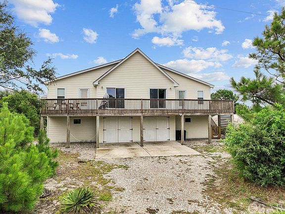 Escape to your private oasis in Corolla's 4x4 beaches. This charming 3-bed, 2-bath beachside retreat offers tranquility and modern convenience, ideal for coastal adventures. Just steps from pristine shores, enjoy sun-soaked relaxation and beachcombing. The open-concept design connects living, dining, and kitchen areas, perfect for gatherings. Upgraded amenities include a well-appointed European style kitchen, contemporary bathrooms and tons of storage. Ease your way up the custom, alternating tread Jefferson stairs to the third bedroom. Abundant natural light fills the home, and the expansive deck offers coastal breezes and stunning sunsets. Explore sand dunes and spot Corolla's wild horses. Secluded and serene, this property is a perfect personal sanctuary or investment opportunity. New HVAC 2013. New roof 2016. New septic 2018 (upgraded to 4 BR), (2) New west facing fiberglass doors w/storm doors. New lower decking & outdoor shower 2018. Enclosed 1st floor 2018, creating (4) car garage featuring 2 extra Refrigerators and and 1 extra Washing Machine plus (2) car cement parking pad, extra raised square footage for additional included appliances, header in stairwell framing to accommodate future expansion of (2) bedrooms. New water heater 2018, new washer/dryer 2019. Total renovation on 2nd floor in 2018/2019: refresh stairwell, new kitchen, refresh bathrooms, all wood laminate & tile floors, added new pantry. Gutter / downspouts north end of house connected to 1200 gal IBCs for water catchment (wash cars, water plants), 12 x 22 greenhouse with water spigots connected to IBCs (can be removed by seller if not wanted). New water treatment system 2022. New exterior stairs 2022. Added Reverse Osmosis at sink & refrigerator 2022. New (4) rail fence in 2023 makes this house pool ready (with proper permitting). Don't miss the chance to own this coastal gem in Corolla's 4x4 beaches. This is truly a turn key home. Will be freshly cleaned for the new excited homeowner.
