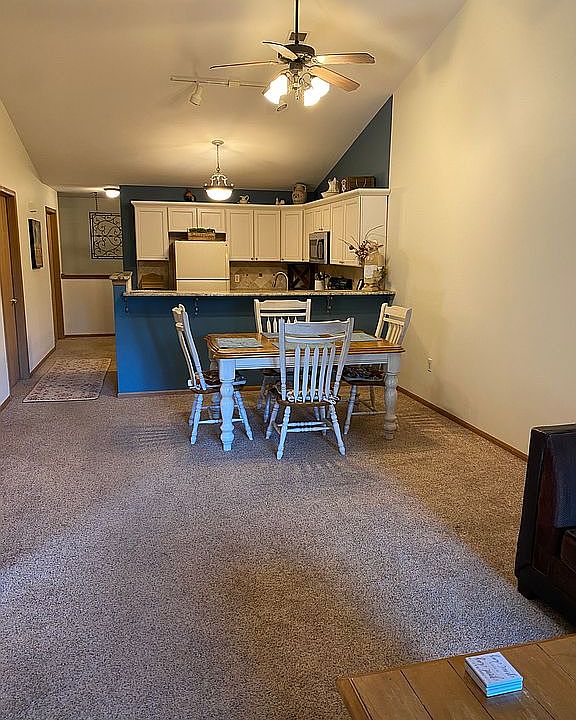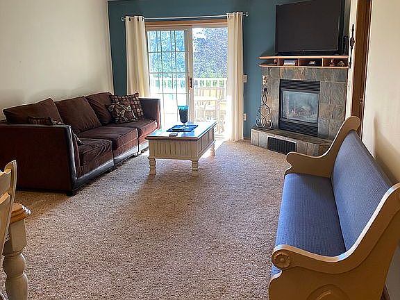 Highly sought-after Pine Ridge Condominium boasts 3 bedrooms, 2 full baths, attached garage and private entrance. An inviting open-concept upper end unit with vaulted ceilings, walk-in closets, and a private balcony that overlooks a beautiful tree-line right outside the patio doors. This unit includes many recent updates which includes granite counter tops, stainless steel sink, tiled floor, kitchen cabinets and breakfast bar. Great room has an updated fireplace with new slate. 3 bedrooms have walk-in closets. Fresh paint and newer carpet throughout including all bedrooms and stairs. 2 bedrooms have bathrooms attached. Laundry room in unit includes washer and dryer and owned water softener. HOA put on new roof in 2019. $1665 sq. ft / taxes $2300. Wake up to maintenance free snow removal even on the heaviest of snow days!!! Beautifully cared for landscaping and lawncare.