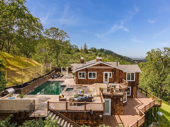 Epic executive estate nestled in the Westside Hills of Alamo with sensational views of Mt. Diablo and the Las Trampas Hills. Sitting atop nearly 3.5 acres, this stunning property is a must-see. Featuring a panoramic wrap-round deck, a pool, spa, and outdoor kitchen with a lounge area overlooking the valley. Walking in the main entry and foyer you will be greeted with natural light and hardwood floors that complement the overall feel and dramatic scenery. The living room complements the dining room along with the kitchen and large fireplace and french doors. The kitchen boasts stainless steel appliances a 6-burner gas range and oven as well as recessed ceilings. The primary suite exudes natural light, crown molding, recessed lighting, and french doors with incredible views. Primary bath ft stone FP,2 vanities w/custom cabinets&granite steam shower. The second bedroom is generous in size. Wine lovers will be wowed by the 900-bottle custom wine cellar. The great room features a wood stove w/brick hearth, bar area w/fridge&storage. Bonus room ensuite with plenty of storage, views, and a convenient Murphy bed. The laundry room with storage sink, 3-car garage, and a large workshop with extra storage. All of this and close to SRV schools,restaurants&freeways. Tenant to pay utilities. No pets. Minimum 6 month lease.