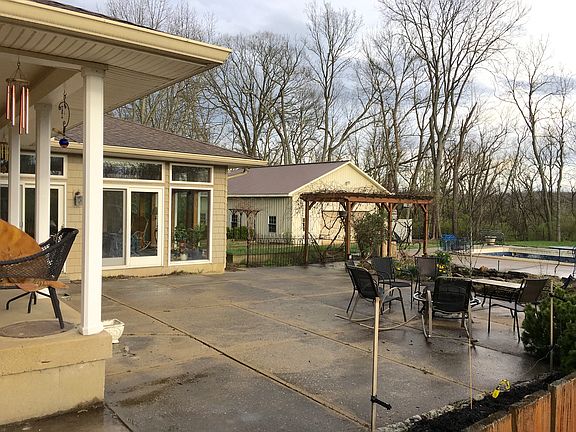 This designer owned Country home is only 5 minutes from town. Situated on 9.2 beautiful acres with 300 feet of frontage, rolling meadows, winding creek and woodlands. A detached heated 30'x 40' + 20'x20' garage with concrete floors. Chicken coop with chickens, if desired. Raised garden beds, large fenced yard and a swimming pool. House includes a large eat in kitchen, first floor laundry with tons of cabinets, living room, open custom designed staircase case and railings overlooking the incredible sunroom and office. Master suite has a 5' x 7' luxury shower, hall bath newly renovated, 1/2 contemporary design. House has three alternate fuel sources, oil, electric and wood stove. House includes an attached 2 car garage.