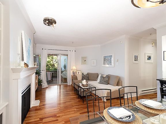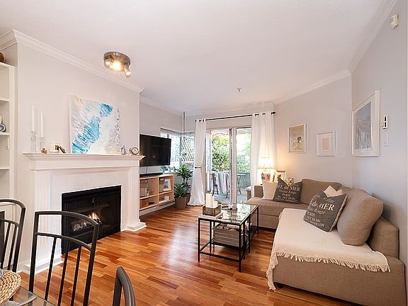 Rare, large 1 bedroom garden-level home in prime North of 4th location. Welcome home to the SeaBreeze, a well-run boutique complex in the heart of Kitsilano. This charming home is complete with hard wood floors, cozy gas fireplace and oversized 150sf patio perfect for pets (3 allowed!) or your container garden. Updated with custom built-in bookshelves in dining area. In-suite laundry, large 13'x11' west-facing patio to enjoy those long summer days, BBQ under cover or dine al fresco. Well run strata and professionally managed building. Minutes to shops, restaurants & Kits beach. Close to Downtown and transit. 3 pets allowed, max. 7 rentals permitted (at max). One storage and one parking included. Please book your private showing March 18/19/20th.