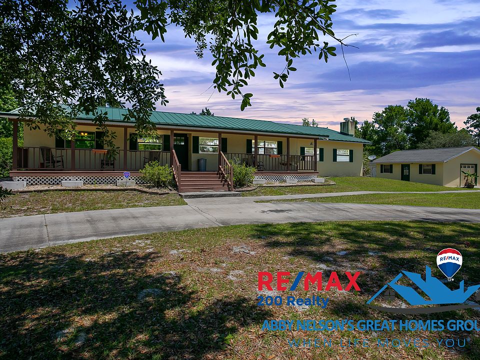 Situated on over 3 acres, this AMAZING property offers you a tranquil setting in a great neighborhood surrounded by STATE PARKS! A HUGE covered front porch welcomes you to this fantastic home, step inside to the formal living room where two sets of window seats provide additional seating and a cozy place to curl up and read a book or sip a cup of tea. Straight through from the formal living you'll find the formal dining room. The focal point of your family room is the BRICK FRONT FIREPLACE flanked by built-in bookcases on either side. From the family room, step up to the large master suite with a master bath that features a shower only. Step up from the family room and head into your HUGE eat-in kitchen where you'll find plenty of cabinet and counter space! A split bedroom floor plan ensures privacy for all! Your spacious master bedroom sits just off the family room while your two additional guest bedrooms are located on the opposite end of the house. You'll find a shower only in the master bath and tub/shower combination in the guest bath. Head out to your screened in back porch, relax and enjoy your peaceful surroundings or watch rocket launches from Cape Canaveral! A separate workshop provides you all the room you'll ever need for a multitude of projects. In 2013 new hardwood floors were installed, along with a new A/C unit, a metal roof and an updated water treatment system. If you're seeking a serene environment, plenty of living space, this property checks all those boxes, you've found HOME!