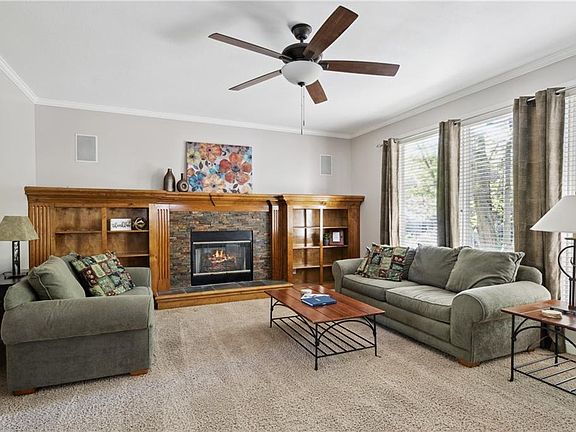 • Features: Built-in Features, Carpet, Ceiling Fan(s), Fireplace