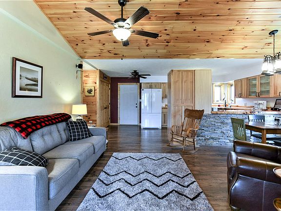 Looking for that special TABLE ROCK LAKE retreat?? This Charming, newer construction, & recently updated, cabin on 3.7 Acres. Offering an abundance of character & charm not to mention all the amazing custom features inside and out. From the front covered porch post that were all cut from the woods on this property, Flower beds and a garden spot if you want to grow fresh fruits and veggies, inside you'll fall in LOVE with the natural Knotty pine vaulted ceilings & doors that add to the rustic atmosphere. Step into the Kitchen to find shaker style custom hickory cabinets with soft close doors & drawers, Oil rubbed hardware throughout the home & 3-inch thick, live edge wood counter-tops that bring organic beauty! The recently finished basement adds an extra BONUS/FAMILY/GAME ROOM (complete with wet bar & wine fridge), an additional bedroom, & full bath. Come & enjoy the LAKE LIFE full-time or vacationing! The 10x24 BOAT SLIP W/LIFT, LOCKER & SWIM PLATFORM is just 10 minutes away & available for additional $25,000 . Seller will only entertain offers that include furniture package and boat slip, lift and locker, he will not sell the home only. Total package is $205,000.