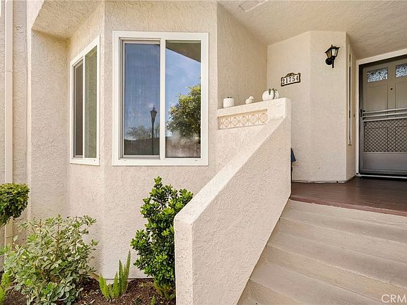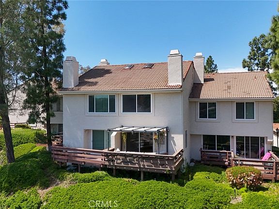 2 bed, 2 bath condo located in the secluded El Mirador community of Lake Mission Viejo! This turn-key home features a spacious and open floorplan with high ceilings, recessed lights, dual pane windows, tile and wood-look laminate click plank floors. The formal dining room has an ornate wrought iron divider matching the staircase banister, and opens to the step down living room with fireplace and a large attached deck that offer gorgeous panoramic views! The updated kitchen has a glass paneled pocket door, to close off the kitchen from the dining area, as well as granite counters, stainless steel appliances with included refrigerator, and a breakfast nook area with beautiful chandelier. A half bathroom completes the main floor. Both bedrooms are located on the 2nd floor, are generously sized, and share a jack and jill bathroom, the secondary bedroom also features a private balcony. This home also has a 2-car garage and residents can enjoy nearby trails and have access the LMV Amenities! Conveniently located near schools, shopping, dining, and more! Schedule your tour today!