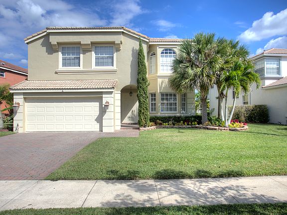 Pride of ownership shows in this elegantly appointed 4 bedrooms Vizcaya Model that sits on a wide lake front lot with beautiful landscape. This lovely home is complimented with neutral diagonal tiled floors, beautiful hardwood staircase accented with glass tiles, crown molding, recessed lighting, a gourmet kitchen with island, a new top of the line refrigerator and upgraded cabinets that have a luxurious antique finish.The master suite has an extended private balcony overlooking the lake and is a large bedroom with sitting area and has a spacious master bathroom and walk-in closets. All guest bedrooms are tastefully decorated with either accent wall trims or Venetian plaster paint. The home also has 2 new HVAC's installed in 2016, inside laundry room with newer LG washer & dryer, storage