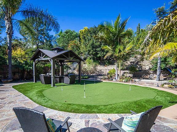 Beautifully remodeled and immaculate two story home in the sought after community of La Costa Valley! This 4 bedroom, 3 bathroom home includes one bedroom on the bottom floor, a loft for an office or work out room, a large open kitchen and a big entertainment room with bar and built-in wine fridge. The house boasts travertine flooring downstairs and all wood upstairs, wired-in ceiling audio system, multi zoned air conditioning, a Jetted corner 96-gallon tub and a big walk in steam shower in the master bathroom. The large backyard includes a built in bbq, gazebo with seating area, putting green, and wood deck. The 24 panel solar system is fully owned. This property is perfectly located just blocks to the award winning El Camino Creek Elementary. Less than a mile to the Carlsbad forum with great shopping and dining and within minutes to Omni La Costa resort, world class golfing, and beautiful beaches. The La Costa Valley Homeowner’s Association provides a Junior Olympic pool, a kiddie pool, with heated water year-round and a spa. In addition, the Valley Club includes a clubhouse, fitness center with tennis/pickle ball courts, basketball court and tot lot. Enjoy the Valley Club, La Costa Valley Preschool and Kindergarten, Pedestrian pathways and trails, Community sites, and Social events.