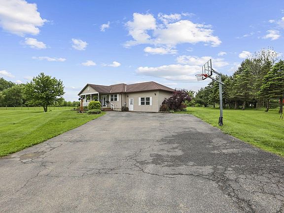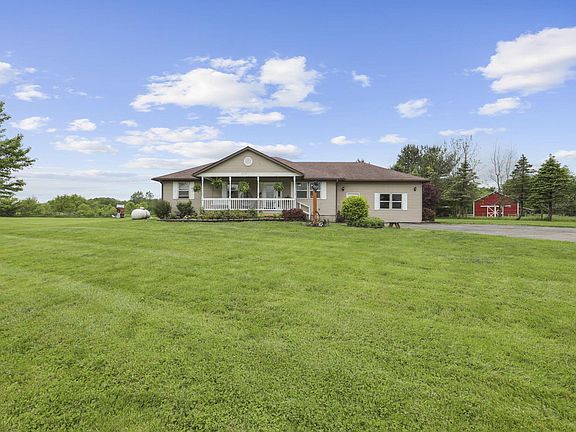 Charming ranch home nestled on 2.5 acres of picturesque land. This is the perfect opportunity for those seeking ample space and tranquility! The property features a spacious outbuilding/garage (24X32), ideal for storage or workshop. Inside, discover a versatile layout with a separate family room and generously sized bedroom. You can access from the house or a separate entrance. The basement offers additional partially finished space. Enjoy cooking in the stainless kitchen with backsplash and ample eat-in area. Convenient first-floor laundry. Step outside to the front or back porch with a cup of Joe and enjoy the serene views of the expansive yard. This is it - your chance to own a slice of countryside living!