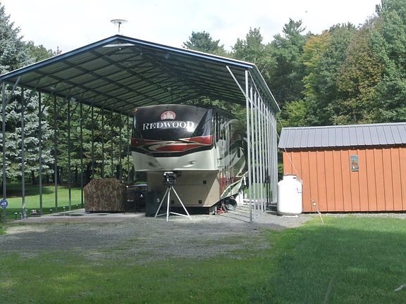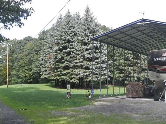 Hunters paradise. Nice cleared open mowed area to build a home. Property to be sold with 2012 Redwood 36 trailer for additional 65k. Property has a septic, well and underground electric as well as a propane tank. Two sheds & concrete slab with carport covering the 2012 trailer. There is a gas well on the property far away from the nice cleared area and the driveway gets plowed and maintained by the gas people.