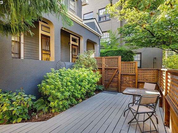 Rare NW Portland condo with backyard commons, LOW HOA, and a walk score of 96! Timeless architecture home converted into three condos. Positioned at the back of home, unit 3 offers a private entrance, porch, and fenced deck area. Craftsman quality trim, stair rail, lighting, and hardwoods. Alluring French doors open to bright living space. Dramatic ten foot ceilings and tall windows amplify main and upper levels. Classic design meets modern amenities with a newly remodeled kitchen and bathroom. Ample closet space, New washer / dryer in unit and lower basement storage.