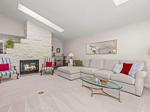 Updated & stunning Ranch townhouse in Concord Village! Bright living area & open concept w/ a seamless flow between living, dining, and kitchen areas. Welcoming front porch. Spacious front entry w/ vaulted fam room featuring stone gas/log fireplace, brand new skylights and lg access sliding dr to cozy private paver brick patio w/ brand new fence! Kit features s/s appl, plenty of counter space overlooking the fam rm. Spacious dining room for family gatherings. Lg primary suite w/ full bath including dbl vanity & shower. Lower level has fin space w/ an add'l flex/bedroom space & plenty of rm for extra storage. Newly updated 2 car attached garage w/ work bench & access to private patio area. Located near shops, dining, UA Schools, hospitals, Scioto River & more! See Improvement List.