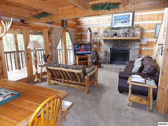 Very nice 1 bedroom, 2 bath cabin with a bonus room that currently serves as an additional bedroom. In a private setting with a spectacular view. Located in the Bluff Mountain area, you are only a few minutes to Pigeon Forge and Wears Valley. Features include an all wood interior, cathedral ceilings, hardwood floors, fireplace in the living room, rec room with a pool table, and spacious decks to enjoy the view. Setup great for overnight rental. Comes fully furnished and decorated. Offered at a great price!