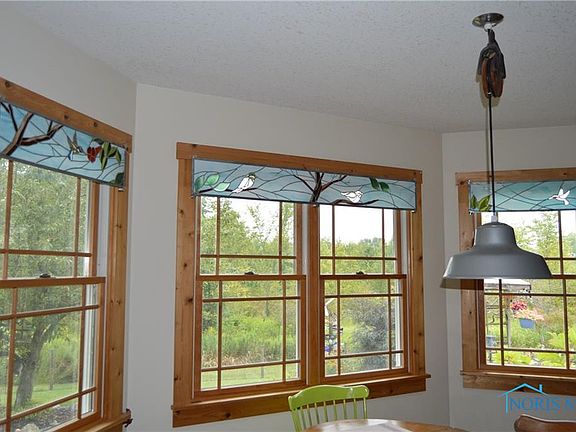 Come and see the peace and tranquility on your own 10-acre wooded property. Owner has created a path through the woods for walking and running, which is almost half a mile. Grass area is about 1 acre. Home owners are artists, which shows in the detailing of the handmade stained-glass window work in the home. Beautiful maple kitchen cabinets have pull out shelving. Just installed are a new dishwasher, furnace, and water heater. First floor utility and a HUGE 3 car attached garage. DR & bedrooms are wired for ceiling fans should you want them. Contingent on sellers finding home of choice.