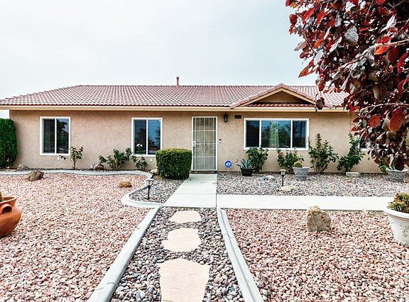 Welcome to your Apple Valley Smart Home This single story home boasts an open floorplan with spacious living room, family room, and kitchen. This smart home has paid off solar panels. Feel free to crank the AC during hot summer months without the dread of the upcoming electric bill. Other features include smart garage door opener, smart thermostat, smart Ring doorbell, water softener with reverse osmosis, newer paint, energy efficient windows and low-flow toilets. The kitchen has expansive counter space and upgraded cabinetry with under cabinet lighting. The master bedroom suite features a walk-in closet, bathroom with separate tub and shower. The large back patio is the perfect place to gather and enjoy outdoor dining.
