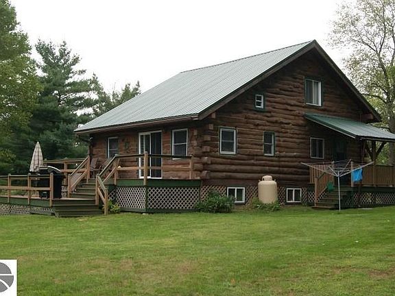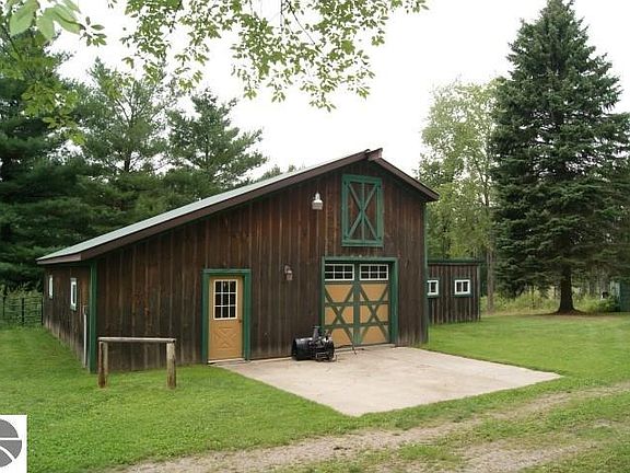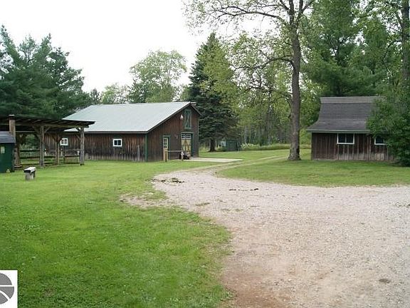 If you are looking for the perfect place to have a hobby farm with all the comforts and beauty of a log home look no further. This charming farm has plenty of space to raise animals, kids, grow a garden or enjoy the vineyard. In the back of the property nestled in the woods, is a 30 x 20 summer cottage for guests! This home is on 10 wooded acres with plenty of wildlife, trails and a small pond just 3 miles from Leroy and 20 minutes to Cadillac or Big Rapids. This home boasts an open floor plan, new kitchen and baths, main floor laundry, main floor bedroom, loft suite with a half bath and sitting room or office. The lower level features spacious family room, storage & three additional rooms which could be used as bedrooms, office etc. Two heat sources propane radiant heat or external wood burner, large deck out back and large private yard. The many outbuildings include a Barn with stable, a large loft great for storage, garage parking and workshop, along with a corral for horses. An additional outbuildings owner uses as his hunting shed storage and small man cave. All of this is set back off a quiet road to enjoy country living.