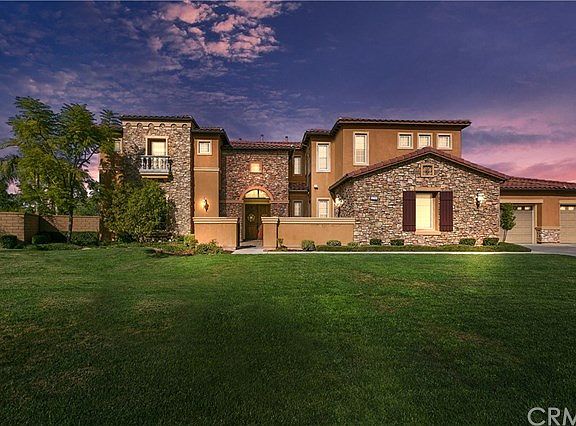 This absolutely distinctive Tuscan home is located in "The Retreat", a 24-hour manned gated community. Part of the Prestige Estate Collection. This amazing home has stunning city, valley, and mountain views. Perfectly located in a quiet cul-de-sac. 1.03 acres "flat lot" with panoramic views. This is the most premium lot in the "The Retreat". 5914 sf living, 1064 sf garage, 5 BD + 5.5 Baths + Loft. Approximately $250,000 in upgrades. Luxurious interior features include: dramatic high volume ceiling, grand foyer, sweeping spiral staircase, crown moulding, elegant flooring, premium carpet, surround sound intercom system, 3 fireplaces. Customized gourmet kitchen has customized cabinets, center island with luxury granite counters, Miele appliances, sub zero refrigerator. Kitchen opens to breakfast nook and huge family room. Downstairs has one bedroom currently being used as a study. On the other side of the house there is an attached Casita perfect for guests or as an In-Law Quarters. Spacious laundry room with lots of cabinets. Upstairs features 3 sizable bedroom suites + loft. The elegant master suite has a fireplace, retreat, and exercise/craft room with custom wainscot panels. The opulent master bathroom has 2 custom large walk in closets. 4-car garage with epoxy flooring and cabinets. Back yard epitomizes the California lifestyle! Fully landscaped and hardscaped, patio addition for outdoor entertainment, basketball court, amazing views. Close to Freeway 15, 91 and shopping.