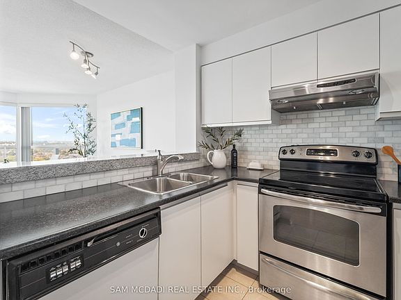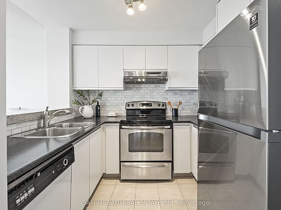 Experience elevated living in this stunning penthouse suite nestled in the desirable Erin Mills community. With 670 square feet of thoughtfully designed living space, this residence features a large bedroom, a versatile den perfect as an office or nursery, and an open-concept layout framed with expansive windows that showcase breathtaking views. The lovely kitchen overlooking the living area features a stone backsplash, a breakfast bar, and stainless steel appliances, while hardwood floors flow seamlessly throughout. Enjoy the convenience of two underground parking spots and a spacious walk-in locker right by the elevator! The all-inclusive maintenance fee covers all utilities, Rogers cable TV, and internet, providing comfort and peace of mind. The privately gated building features 24/7 live security and offers resort-style amenities. These include a clubhouse with an indoor pool, a fully equipped gym with sought-after equipment, a sauna, a party room, a squash court, billiards, ample visitor parking, and beautifully landscaped grounds that create the feel of your own community.Located in one of Mississauga's most sought-after neighbourhoods, you'll be steps from Erin Mills Town Centre, top-rated schools, restaurants, grocery stores, parks, and community trails. With quick access to highways 403, 407, and the QEW, you can be in downtown Toronto in no time-perfect for an evening out with loved ones. This penthouse combines style, comfort, and convenience in an unbeatable location.