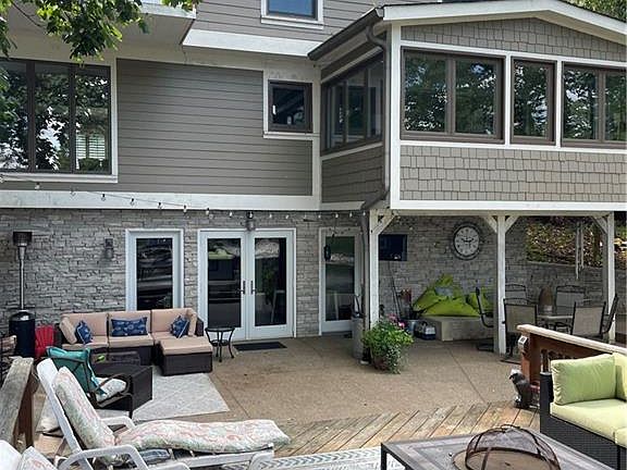 Welcome to the best kept secret in Morgan County, Foxcliff! Beautifully updated Foxcliff North lake front home with large yard, huge patio with outdoor gas fireplace, spacious lakefront deck, beach, dock, main level deck off kitchen and juliet balcony from primary bedroom. Exceptionally large lower level family room with large stone wood burning fireplace, wet bar/kitchen. Full bath on lower level - easy access from outdoor fun. All full baths have been updated with tile floors and shower/bath. Fresh bright finishes are charming and on trend. Amenities include 2 association pools, tennis courts, trails and access to the Manor House (club house). Meet up with friends on Friday nights at the Manor House for dinner!
