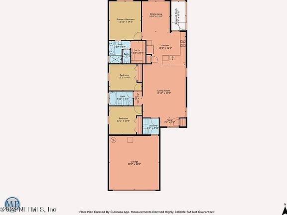 Back on the Market in the Beautiful Coastal Oaks Community. A modern 3 bedroom & 2 bath beach inspired home, featuring an open concept living space and large dining area. Stainless steel appliances and quartz countertops compliment a coastal blue backsplash in the kitchen. The gas cook top is supplied by an outdoor propane tank. Generous storage around the home includes stylish white cabinetry and a massive walk-in closet. The primary bathroom features a shower, while the hall bath has been modified with accessible bathtub. The indoor laundry room connects to a two car garage. The fenced-in yard hosts a few trees and plenty of space for your green thumb. Located adjacent to the vibrant Jacksonville beaches, with easy access to the rest of the city. The beaches play host to a variety of shops and restaurants, as well as parks and the wide sandy beach itself.