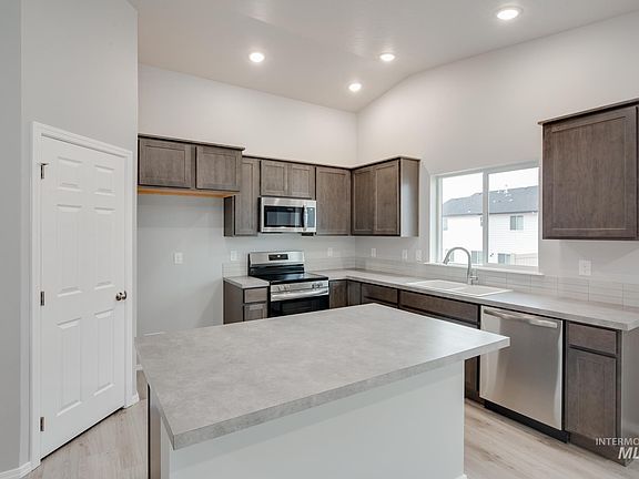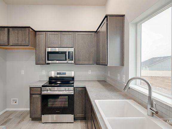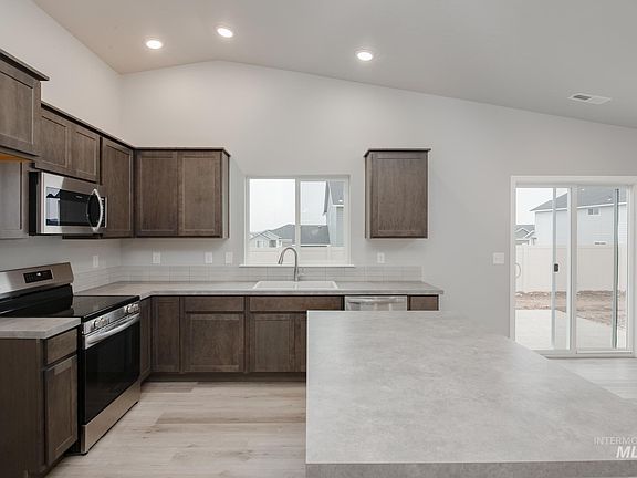 Embrace the comforts of a brand new home in Kuna, Idaho. The Willow 1860's single level space is smartly laid out, boasting two bedrooms situated at the front of the home. The kitchen comes with stainless steel appliances and stylish solid surface countertops, adding both functionality and aesthetics to the kitchen. To entertain or for personal relaxation, escape into the spacious vaulted great room and dining room that open onto a back patio. Natural light cascades through the windows, adding an illuminated touch to the vaulted ceiling. Retreat to the primary suite for restful nights, complete with a roomy en suite bathroom, dual vanities, a stand-up shower, and a walk-in closet. Enjoy the luxury of the great room or warm nights under the stars – this one-of-a-kind home provides space for everyone! Photos are similar. All selections are subject to change without notice, please call to verify.
