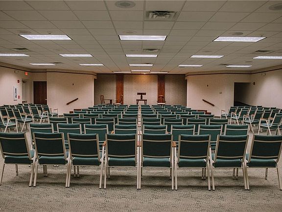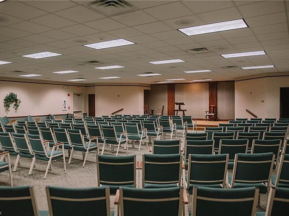 All brick building and all brick storage for lawn maintenance and storage. This very well maintained building was built as a Religious/Public Worshop with auditorium seating for approximately 190. 2 additional meeting rooms seating 14 each. Large, welcoming reception area with cabinets, display counter and coat closet. Men's and women's bathrooms and additional single bathroom. Maintenance/utillity sink room. Plenty of parking. Roof replaced in 2013.