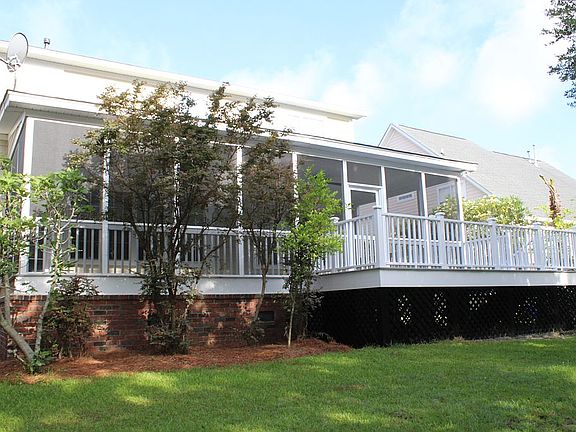 Charming southern cottage located in one of Mount Pleasant's most sought after neighborhood of Rivertowne on the Wando. Stepping into the home you'll be greeted by gleaming hardwood floors and a formal dining room with custom treatments such as wainscotting, crown moulding and tray ceiling. Currently being used as a home office, this flexible space can transform into any use that suits your family's needs! Just beyond, the stunning two story family room provides the 'wow factor' everyone is searching for! Soaring ceilings with open cat walk railingwill have you envisioning it bedecked with holiday garland while you gather the family in front of the roaring fire. The gas log fireplace with custom mantle and true raised hearth is flanked by built-ins with arched openings. The open floor plan is as ideal for entertaining as it is for everyday living, and the family room flows seamlessly into the eat-in kitchen. Truly a cook's kitchen, the chef in the family will delight in the expanse of granite countertops, large bowl under-mounted sink and the stainless steel appliances while also enjoying the beauty of the custom cabinetry and the tumbled tile backsplash. A long raised bar allows plenty of space for friends and family to sip a glass of wine and chat with the cook as meals are prepared. Casual meals can be enjoyed at the bar, in the dining nook or step out onto the oversized screened-in porch which offers more than enough room for a dining table as well as an outdoor living room space. Three ceiling fans provide a cool breeze while you settle in to read a book or sip your morning coffee. Adjacent to the porch is a large sundeck where you can grill dinner while watching the kids and pets frolic in the fully fenced, large and private backyard. This home backs up to a conservation easement so you'll never lose that peaceful privacy! When the day is over retire to master suite, conveniently located downstairs. This generously sized suite boasts tons of natural light, tray ceiling, walk-in closets and an en-suite luxury bath. The spa-like master bathroom features a double vanity with upgraded light fixtures and framed mirror accents, wood-look tile, custom tiled shower with river rock bottom, large soaker tub and a private water closet. The main floor is completed by a guest powder room and laundry room while upstairs offers four additional bedrooms and two full bathrooms. All of this and located in the prestigious Rivertowne on the Wando Neighborhood with three community docks for fishing, boating or just to relax and watch the amazing Wando River sunsets. Enjoy golf at Rivertowne Country Club's Arnold Palmer Signature Course then meet friends at the club for dinner. Additional amenities include neighborhood pool, tennis courts, walking trails and play park all conveniently located to beaches and the world class dining and shopping of historic downtown Charleston