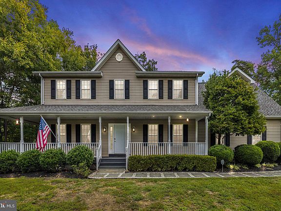 Welcome Home! This gorgeous home features 5 spacious bedrooms, 3 full bathrooms, 2 half bathrooms, hardwood floors, a large sunroom and back deck for entertaining, approximately 1.65 acres, a finished basement, stainless-steel kitchen appliances, and granite countertops in the kitchen. The wrap-around porch invites guests into this lovely Colonial-styled home, and the backyard opens up to a private, wooded lot. Additional amenities include brand new carpeting throughout the entire upstairs and basement, a freshly painted interior, refinished hardwood floors, brand new water heater (2023), and a New American Standard HVAC (2022). The basement features a theatre room, wet bar, and an open recreational area great for an indoor gym or other interests! The backyard offers privacy and features a hot tub, an enclosed garden with grapevines and garden beds, and allows for chicken coops, if desired! This home offers privacy and serenity while being conveniently located near Stafford Regional Airport and I-95. Come see this beautiful home today!