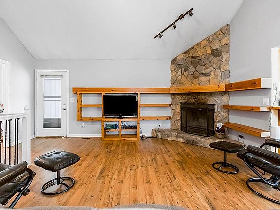 Don't let this Ranch on a spacious corner lot pass you up! This 4 bedroom 2.5 bath home will not last long. The main floor boasts an open living room with high ceilings and beautiful wood shelves all around the fireplace, 3 bedrooms and 1.5 bath along with an open eat in kitchen and combo breakfast room. Let's not forget the washer and dryer are on the main level for your convenience. A beautiful evening on the oversized deck is just off the living room for your enjoyment. Downstairs has a bedroom and full bath. 2 spacious entertaining areas for your family and friend gatherings. This residence in the heart of Spring Hill. It's conveniently located with easy access to US highway 169, local shopping and dining. Only 15 minutes to beautiful Hillsdale lake. Basement carpet was removed due to a few too many gatherings and fun through the years. Homeowner decided not to replace due to moving. NO WATER EVER in basement.