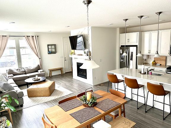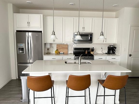 This home is located in the new developments close to Southlands Mall. The home was built in 2018 and includes an upgraded fire place, second floor laundry, and a spacious loft on the second floor. The home is south facing which offers wonderful natural light in the main living room and upstairs bedrooms. The neighborhood is well maintained and includes access to the neighborhood pool. The yard requires very little maintenance. The side yard is a combination of concrete and rock, and there is a sprinkler system in the front to maintain the landscaping. The HOA provides snow removal in the winter and mowing in the summer. The neighborhood is also incredibly pet friendly, providing numerous stations where you can find doggy bags and trashcans for pet waste. The home is located in the Cherry Creek School District and has wonderful schools nearby. The home will be unfurnished, but all major appliances will be included in the rental including the washing machine, dryer, dish washer, refrigerator, stove and oven, and microwave. Renter is responsible for gas, electric, and water. Owner is responsible for HOA fees, which includes trash and recycling. First month's rent and the security deposit is due at signing. No smoking of any kind allowed. Pets are welcome. There's an additional non-refundable pet deposit of $500 also due at signing. There are two parking spaces in the garage and the rest is unassigned street parking. The lease is for 1 year. Available starting June 15th.