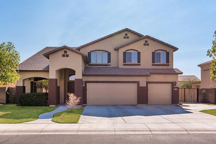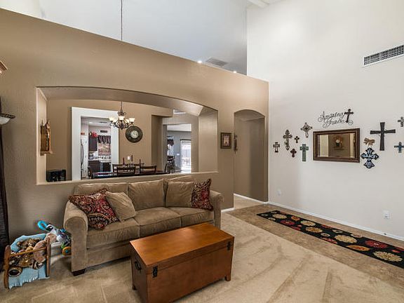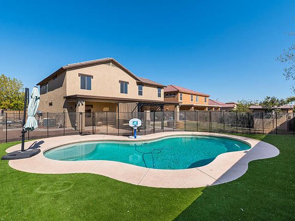In ground play pool with self closing and latching fence. Turf around the pool. House repainted in 2016. Concrete countertops put in throughout the home in 2016. Solar panels owned and put on in 2014 prior to the additional APS fee. 3 car garage with storage cabinets. Large laundry room.