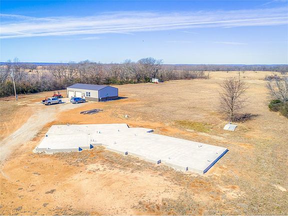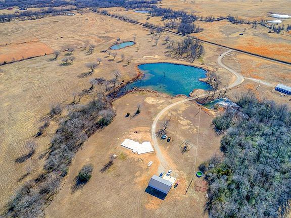 80 acres w/ 60x40 barn, 2 car garage w/ living quarters that includes 1 bedroom plus loft w/ 2 rooms, 1 bath and full kitchen to live in while building, plus 3000 sqft home on existing slab w/ plumbing overlooking 3 acre (m/c) stocked pond.