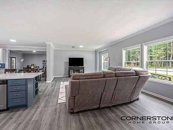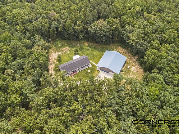 Discover your private paradise on 16 acres! This stunning 3-bedroom home has undergone a complete remodel in the past year with several major upgrades (approx $100k in improvements). Priced for quick sale so owners can move closer to family. Enjoy a completely renovated kitchen and bathrooms, new flooring, light fixtures, and fresh paint throughout. The main floor offers an open layout with high ceilings and ample natural light. The redesigned kitchen features a large island, coffee/beverage bar with mini fridge, quartz countertops, stainless steel appliances, and a new pantry with built-in shelves. 3 bedrooms with walk-in closets, including the primary with new closet built-ins. Full sealed and insulated crawl space with concrete floor. Outside boasts new composite decks, beautifully updated landscaping, underground sprinkler, new leaf guard gutter with lifetime warranty, and landscape lighting with tree uplighting. A spacious pole barn with finished living space/apartment with full bath and kitchen with on-demand water heater. Heated garage space with 30amp RV hookup.