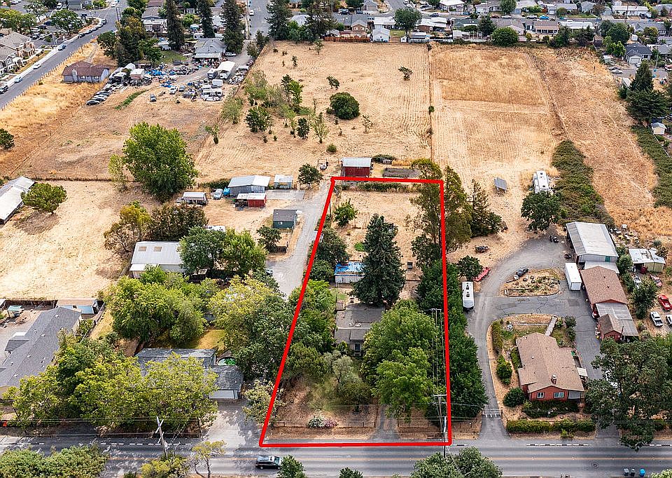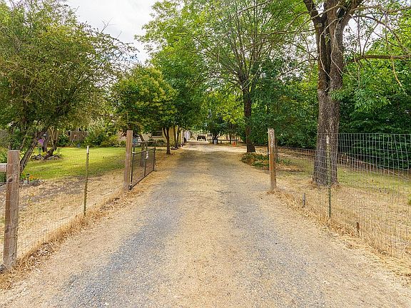 This single level home is situated on .77 useable acres with multiple out buildings and conveniently includes a private well, and public sewer. The expansive front yard is secured with a private gated entry, that is also perfectly shaded with tall Redwood trees. The side of the yard includes a gated dog pin and a covered gazebo. There is a broad, open gardening area, as well outbuildings and a barn with a vast amount of open space. The home offers large Livingroom, dining area, kitchen, indoor laundry. All bedrooms and generous in size including the master bedroom which has access to the backyard. When opportunity knocks be sure to move fast, as this home will not last long.