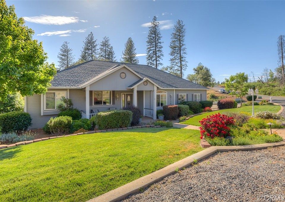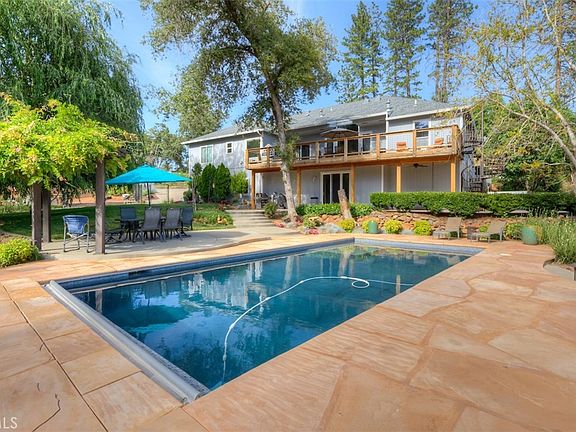 Your DREAM HOME awaits with POOL, OWNED SOLAR, back-up GENERATOR and a POOL/GUEST HOUSE! This magnificent home features all the luxuries for simple living and even lends itself to generational living if preferred. With three spacious bedrooms and 3 full bathrooms on the main level, an open concept living room, office with double door entry and a chef's dream kitchen that is fashioned with new leathered quartzite counters, a breakfast bar, newer stainless appliances, large center island with built-ins, appliance pantry, separate walk-in food pantry, pots and pan drawers and plenty of room to make all your favorite culinary treats. Off the kitchen you will find a breakfast nook that leads to the large upper deck, perfect for evening barbeques overlooking the sunset skies and your personal backyard oasis. The popular split bedroom floorplan provides a generous primary suite plus two additional bedrooms on the main level, each with private bath. The primary suite offers double vanity, large walk-in shower, soaking tub with a view and spacious walk-in closet plus private patio access. Downstairs leads to a large media/entertainment room with a kitchen nook, bonus room and the fourth bathroom plus there is an ADDITIONAL garage with private access, sauna plus more storage than you could ever need. But there's more..... the GUEST/Pool HOUSE provides a private driveway, 2 additional bedrooms and a private bath just steps away from the sparkling saltwater pool. Yard is perfect for entertaining as it features a LARGE pool with ELECTRIC cover, a half-court BASKETBALL court, built in wood-fire BBQ, bubbling hot tub, fruit trees, mature shade trees and extensive decking and garden areas. Property is also equipped with a Cummings 30 kw power generator that will immediately activate in the event of power outage and run everything this custom home offers but don't forget about the fully OWNED SOLAR system to keep your expenses down year-round. All of these amenities are nestled on just over one acre of perfectly manicured, fully fenced property with multiple options for RV parking. The countless amenities are never ending, you MUST SEE this spectacular home yourself to take in ALL it has to offer! Call your agent and schedule a private showing TODAY!